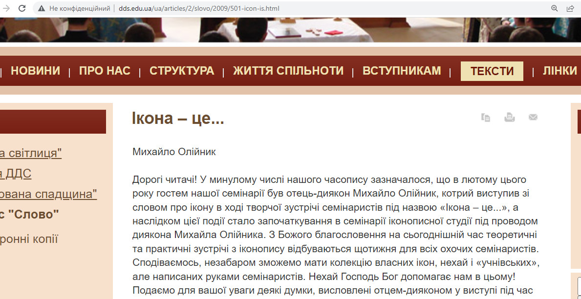 З виступу отця-диякона Михайла Олійника в Дрогобицькій духовній семінарії УГКЦ блаженних священномучеників Северина, Віталія та Якима під час зустрічі з семінаристами «Ікона – це…», а також відповіді на запитання, поставлені слухачами з зали.