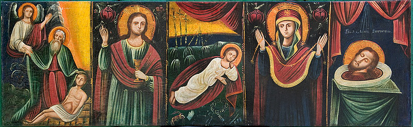 епістилій”Жертвоприношення Авраама, Варвара, Недремне Око, Покрова, Усікновення Івана Хрестителя” 2 пол 19 ст. поділля