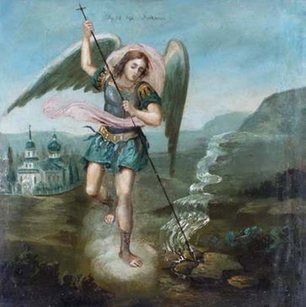 “Чудо в Хонах” (фрагмент ікони “Собор Архистратига Михаїла”) Н. Зубрицький. Пречесниє акафісти. 1709