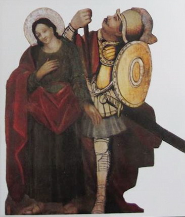 “Сотник Лонгин” (фрагмент “Розп’яття”) к. Трійці, м. Люблін. майстер Андрій, 1420