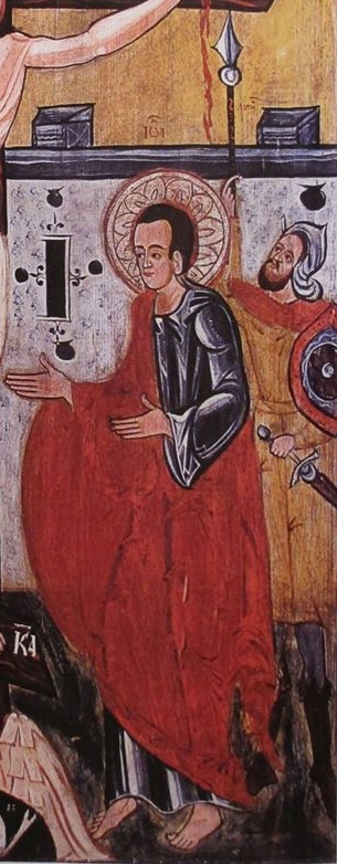 “Іван Богослов і Сотник Лонгин” (фрагмент “Розп’яття”) іконостас с. Стара Скварява, Перемишська школа середина 16 ст